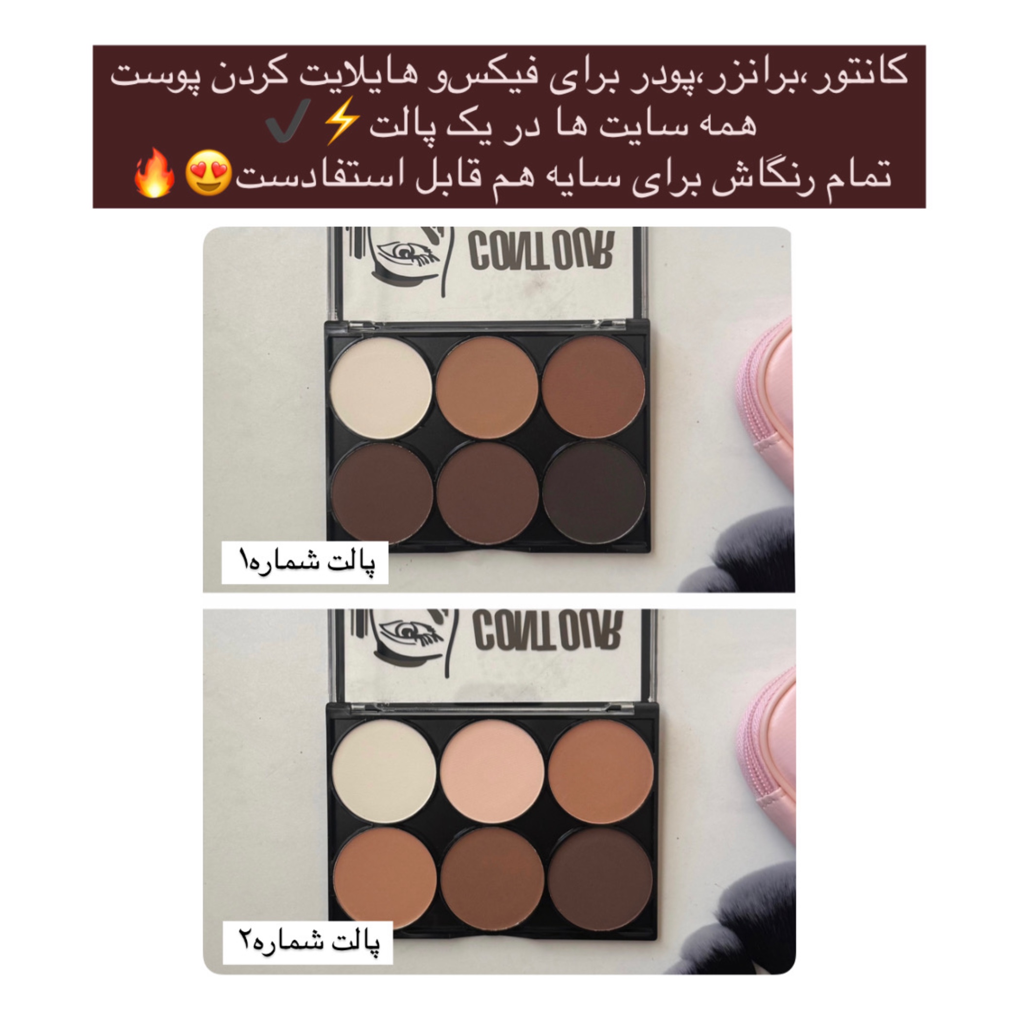 - دارای برنزر-کانتور-و یک رنگپودر روشن برای بیک و هایلایت کردن پوست